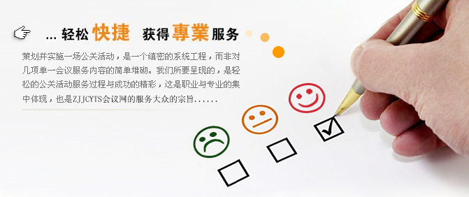 我們的會議服務(wù)承諾 張家界ZJJCYTS會議網(wǎng) (01)、可及時準(zhǔn)確提供酒店、往返交通(機(jī)票、火車票)、旅游信息,針對您所需的服務(wù)項(xiàng)目第一時間的策劃與報價。 (02)、如果您需要親臨現(xiàn)場考察,我們會有專人協(xié)助您的工作。 (03)、執(zhí)行雙方確認(rèn)的《協(xié)議條款》,在保證您所需的服務(wù)的前提下,保護(hù)雙方的合法權(quán)益。 (04)、提供會議簽到臺,并有專人協(xié)助會務(wù)組分發(fā)資料,辦理相關(guān)入住手續(xù)。 (05)、會議期間,可按要求叫早、叫醒服務(wù),使參會代表準(zhǔn)時參加會議,并安心休息。 (06)、參會代表離店前,有專人協(xié)助辦理離店手續(xù)節(jié)省大家時間,同時為部分延住、晚離店代表辦理相應(yīng)手續(xù)。 (07)、會議期間,根據(jù)具體情況,適時提供會務(wù)人員部分免費(fèi)房。 (08)、免費(fèi)給會議重要領(lǐng)導(dǎo)接站送鮮花,以及在參會期間住房贈送鮮花和水果。 (09)、協(xié)助會務(wù)組布置會場和綠化。 (10)、如果您需要在會議答謝宴會上穿插即興的文娛活動,我們能為您安排最好的節(jié)目與演員、樂手,提升現(xiàn)場氣氛。 (11)、免費(fèi)為會議提供會議提示牌、水牌和席位卡。 (12)、根據(jù)實(shí)際情況,提供收費(fèi)/免費(fèi)機(jī)場、火車站接送服務(wù),如有參會者需提前返程,可在會堂一角設(shè)返程機(jī)票預(yù)定。 (13)、如果您在會后需要為參會嘉賓提供一份具有當(dāng)?shù)靥厣募o(jì)念品,我們會提供必要的服務(wù)及信息,并協(xié)助您采購。 (14)、如果您在會后需要為參會嘉賓提供一次難得的旅游活動,我們會為您提供最優(yōu)質(zhì)的旅游行程、游覽到最好景區(qū)景點(diǎn)、安排最佳時間段飛機(jī)航班、品嘗到當(dāng)?shù)刈罹叽硇缘娘L(fēng)味餐、最好的導(dǎo)游、駕駛技術(shù)一流的師傅和車況良好的旅游車輛,同時報給您一個合適公道的價格。 (15)、公關(guān)禮儀:禮儀小姐(現(xiàn)場禮儀接待,派發(fā)資料,形象展示) 文藝演出(專業(yè)表演團(tuán),可挑選節(jié)目) 空飄(氫氣球充氣、升空) 花籃(大、中、小號訂做)主持人(男、女均可) 簽到筆。▽I(yè)用品) 攝影攝像(專業(yè)攝影公司、專業(yè)攝影師) (16)、印刷設(shè)計:很多文字性的宣傳資料,由于量大不便攜帶,我們愿意在當(dāng)?shù)貫榭蛻艚鉀Q這些資料 的制作工作。 名片單色/多色的制作; 意見調(diào)查表格;相關(guān)資料的打字、復(fù)印、印刷; 彩旗的制作; 背景牌:有材料做夾板,進(jìn)口螢光紙; (17)、物品運(yùn)輸:會議中若是需要很多相應(yīng)物品和設(shè)備的,我們愿意為客戶解決這些物品的運(yùn)輸、搬運(yùn)問題。 小件展品運(yùn)輸:展柜,展桌,椅子,小型設(shè)備,小件貨物的運(yùn)送;大件展品運(yùn)輸:大型器械,大件物品的運(yùn)送; 特種展品運(yùn)輸:化學(xué)用品,醫(yī)藥用品以及復(fù)雜物品的運(yùn)送; 遠(yuǎn)程展品運(yùn)輸:遠(yuǎn)距離的展品運(yùn)送;參展資料運(yùn)輸:宣傳資料,印刷品,紀(jì)念禮品的運(yùn)送; 貴重展品運(yùn)輸:電腦、服務(wù)器、鋼琴等貴重物品的運(yùn)送。 (18)、物品配送:酒水食品:如會議期間會務(wù)方需要煙、飲料、礦泉水、食品等日常生活用品,我方可代購; 辦公用品:代辦會議期間,會務(wù)組所需的辦公用品;紀(jì)念禮品 :提供禮品、旅游紀(jì)念品的咨詢、選送等服務(wù)。 服飾:參會嘉賓若能身著統(tǒng)一、最具特色的服飾,會對外界(其他人群)產(chǎn)生一種特殊的感覺與影響;旅行袋:印有會議主辦方指定的圖案和文字的旅行袋,除能幫助參會嘉賓裝載物品外,更多一份紀(jì)念意義; 筆記本:特殊紀(jì)念意義的筆記本,能讓客戶銘記本次活動與會議主辦方; (19)、翻譯服務(wù):中英對譯口譯、中日對譯筆譯、中韓對譯筆譯、中俄對譯口譯。 (20)、訂票服務(wù):代訂各大航空公司及相應(yīng)各大航線優(yōu)惠折扣機(jī)票; 免費(fèi)代訂全國各地返程火車硬(座)臥鋪車票。 (21)、郵政速遞:文件資料包含印刷品,信函、明信片、大、小件包裹的代為發(fā)送、寄出。 (22)、汽車租賃:專車免費(fèi)全天接站;優(yōu)惠價格提供會議期間用車服務(wù)。 豐田面包車、考斯特、依維柯、金龍中巴(大巴)、瑞典沃爾沃、韓國現(xiàn)代(大宇)、德國凱斯鮑爾等進(jìn)口豪華大巴及各種品牌的中高檔轎車,任你們選擇。 (23)、醫(yī)療保健:如客戶需要,我們可派出隨團(tuán)醫(yī)生,保障會議期間客人的身體健康。 (24)、我社將全程依照《中華人民共和國旅游人身意外傷害保險條例》的規(guī)定,進(jìn)行相應(yīng)的保險(不論參會嘉賓國籍) (25)、我社根據(jù)客戶的意愿、要求,策劃、組織、執(zhí)行會議的各項(xiàng)接待工作,讓會議客戶放心、滿意最大化;讓會議接待服務(wù)優(yōu)質(zhì)最大化。